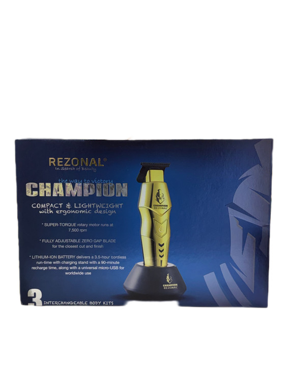 ماشین اصلاح خط زن رزونال چمپیون Rezonal CHAMPION دارای موتور روتاری DC است که با سرعت 7500 دور در دقیقه اصلاح می کند و دارای ویژگی های برتری همچون تیغه کربن 440 استیل ضد زنگ ژاپن با عرض 40 میلی متر است که مناسب برای خط انداختن و انجام کارهای ظریف در اصلاح می باشد. تریمر رزونال چمپیون خط برش صفر ایجاد می کند و با طول برش 0/2 - 0/1 میلی متر کار اصلاح را انجام می دهد.
