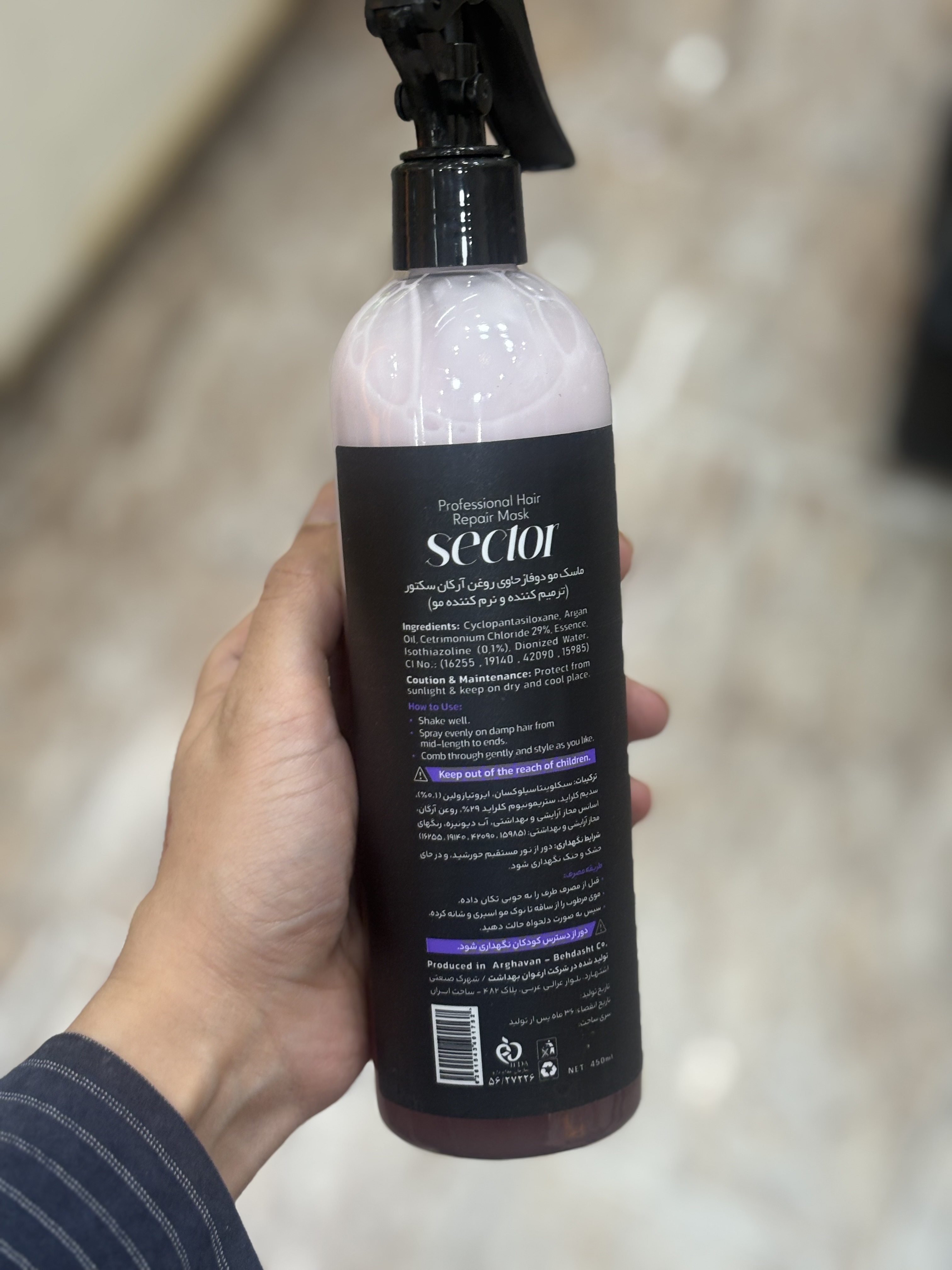 سکتور دوفاز بنفش 450 میل حاوی ویتامین های فراوان می باشد که با تقویت ساقه ی مو ها و تغذیه ی آن ها، از موخوره مو جلوگیری کرده و آن را به خوبی درمان می کند، علاوه بر آن موجب ترمیم و تقویت مو می شود و خشکی ساقه ها را به خصوص در مو های فر، رنگ شده و آسیب دیده به خوبی درمان می کند.